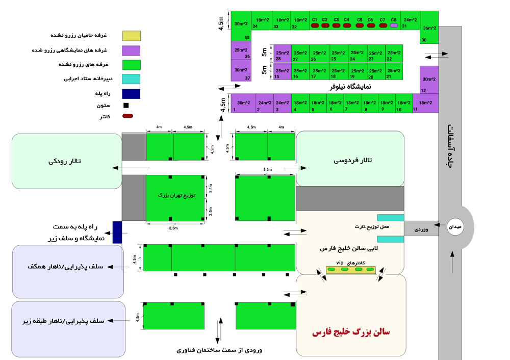 غرفه بندی های نمایشگاه انجام شده و در غرفه های 12 متری، 18 متری و بالاتر قابل ارائه است. همه غرفه ها بصورت پیش فرض کف سازی شده و غرفه سازی باتتریس انجام میشود. ب هر غرفه 2 نفر سهمیه ثبت نام رایگان، یک کانتر با درج لوگو، دو صندلی و یک میزنمایشگاهی، برق و کتیبه داده می شود.امکان ساخت با چوب نیز وجود دارد.